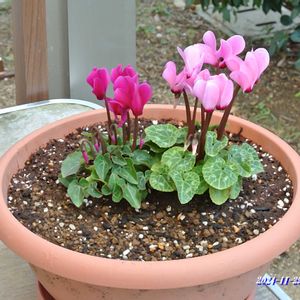 gardenシクラメン&ムスカリ (11/30) 丸鉢に、ガーデンシクラメン、そして、今はわかりませんが、 ムスカリを植え付けました。 春が楽しみです。🔶🔷🔶