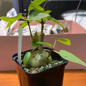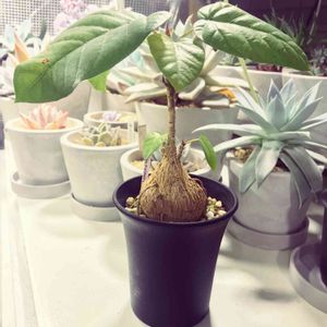 ■フィカス一家 ・フィカス ペティオラリス×2 →クワ科イチジク属/メキシコ原産 ・フィカス アブティリフォリア@花宇宙 ・フィカス パルメリー1号@ザ ファーム ・フィカス パルメリー2号@W・PLANTS ゴムの木の仲間、フィカスさんにも塊根系の子たちがいるのをご存知でしょうか。 京阪園芸で観葉植物(挿し木なので塊根ができないタイプ※2019/7/21pic参照)としてお迎えした、赤ウンベことペティオラリスさんとの出会いが、新たなフィカス物語の始まりでした📖 というほど大げさな話ではない。ペティ大ちゃんは室内で無事越冬して、新芽も出てきたのでふた回りほど大きな鉢に植え替えました。元気に育ちますように☺️