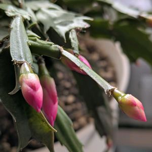 こんにちは☺️ 我が家のお花 デンマークカクタス (シャコバサボテン) ①②③④⑤ ちょっと🤏🏻ずつ 花芽が出てきてました 暖かい部屋で 日当たり良好な🪟際に すくすくと 蕾がふっくらと してきてました😘💕 ☆サボテン科 ☆カニバサボテン属 ☆短日性植物 秋に日照時間が 短くなると花芽をつける ☆多年草 ☆花言葉 美しい眺め ひとときの美 つむじまがり 🏷️2021年同期の会No.8 🏷️紛紅駭緑💗 🏷️太陽がくれた季節a☀ 参加させて 下さいね🐰💗