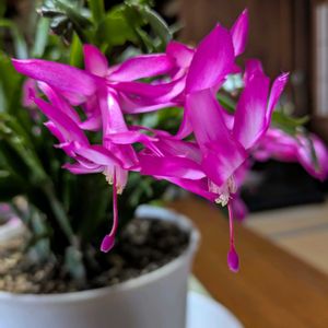 こんにちは☺️✨ 部屋の中で 二鉢が ふんわりと咲いてて くれます🤗🩷🤍 ①②③ デンマークカクタス💖 シャコバサボテン (2021.11/16お迎え) ④⑤ デンマークカクタス🤍 シャコバサボテン (2023.12.11お迎え) ☆サボテン科 カニバサボテン属 ☆シャコバサテンは冬に室内の日当たりのよい場所で管理しましょう。暖房が効きすぎない15~20℃の室内の窓際に置くのが適しています。とあり まだまだ 元気に咲いてます ☆花言葉 美しい眺め・冒険心 命の喜び 🏷️2021年同期の会No.8 🏷️桃色百花繚乱💖 🏷️白輝美人 参加させて 下さいね🐰💗
