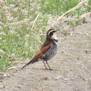 11:03 ツグミが散歩道に口をつぐんで突っ立っていました😊