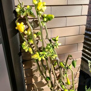 こんにちは🤗 急激に寒くなって来ました 我が家のつのなす🦊 まだ完全に黄色くなっていません😢 小さな🦊は色が変わってます 今切っても色づきますか❓