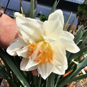 2021.3.20 川崎市の潮音寺にて! 八重のスイセン。 真ん中が肌色のは珍しいですよね。
