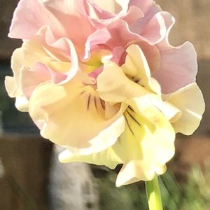 今日はちょっと肌寒いけれど、春の陽射しが降り注いでとってもよいお天気です☀️ パンジー フェアリーチュール ウィーン嬢が陽光に照らされてすごくステキに見えたので、記念にパチリ📷