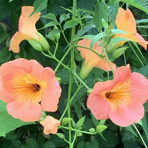 凌霄花(ノウゼンカズラ)さんが咲きました🧡シャンデリアのように咲くこの花は放ったらかしで強いです🧡🧡ビタミンカラー🧡明るく元気
