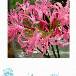 🪴ベランダの花たち その③ ダイヤモンドリリー 今年はまだ蕾なので、 昨年の秋に咲いたものを… 今日のお花💐 ピンク系濃淡と白を合わせて4色12球を少々窮屈に植えていますが、昨年は3色4本咲いてくれました。 さて、今年は…(*´꒳`*)💕 🎶🎼 ダイアモンドだね AH AH いくつかの場面 AH AH うまく言えないけれど 宝物だよ あの時感じた AH AH 予感は本物 AH 今 私を動かしてる そんな気持ち 🌧 *・゜゚・*:.。..。.:*・'🍁✨'・*:.。. .。.:*・゜゚・* ⌘ メモ ⌘ 🔸科名・属名 ヒガンバナ科 ヒメヒガンバナ属(ネリネ属) 🔸学名 Nerine 🔸英名 Nerine Diamond lily 🔸別名 ネリネ ヒメヒガンバナ(姫彼岸花) 🔸由来 ❇︎「ダイアモンドリリー」 花弁が宝石のようにキラキラと輝くことから ❇︎「ネリネ」 ギリシア神話の妖精「ネレイデス」 🔸原産地 南アフリカ 🔸花期 10月中旬~12月中旬 🔸花色 白 赤 ピンク オレンジ 紫 複色 🔸特徴 多年草。落葉性球根植物。 17世紀頃から欧米で盛んに品種改良が行われ、 日本には大正時代に伝わったが、姿形がヒガン バナに似ており、日本では認知度が低く普及しな かった。しかし、近年、花弁が宝石のように キラキラと輝くことから「ダイヤモンドリリー」 の名前で親しまれるようになり、切り花や鉢物と して注目されるようになった。 ネリネは30種ほどの品種が南アフリカを中心に 自生している。直径3~6cmほどの花が、10~20 個集まって1つの花のように咲き、大きいものでは、 花びらが10cm以上になるものも。 流通する園芸種の多くは、ネリネ・サルニエン シスをもとに改良されたもので、耐寒性がなく、 冬は凍らないように管理する必要がある。一方、 ボーデニー種やウンデュラータ種は耐寒性があり、 関東地方以西では戸外での栽培が可能。また 日当たりを好む。 開花期間は長く、1か月間くらい花を楽しむことが 可能で、切り花やアレンジメントとしても花もち がよく、重宝される。
