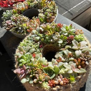 冬越し用の保険株をリース仕立てに。 友達にもらった流星ポーチュラカ ピンキーとご近所さんにもらったポーチュラカ ギリエシー 調べたら同じもの(?)らしいので芽を摘んでギュギュギュー💜 根が出ると少し傾くので ピンセットで立て、出来た隙間にまた詰める… TOKYO DOME ナウ 飲み過ぎて楽しい🍻🎶 8回裏、今のところ 負けてるけど😵💦