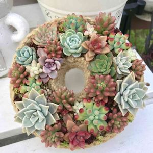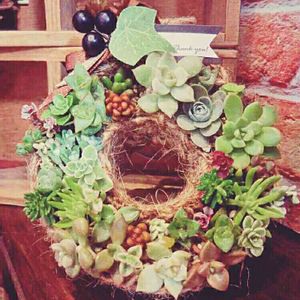 麻ひもリースに多肉寄せ植え😊