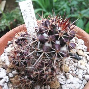 マミラリア 紫丸 その名の通り、紫がかった色に、白いモフモフがいいですね❤️ しかし、お迎え直後「あのサボテン腐ってるの?」と家族に言われました・・・😞💦