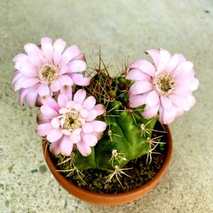 サボテンさん咲いたよ🌸毎年ちょっとずつ大きくなってますね。ギムノカリキウム🌵麗蛇丸🌵