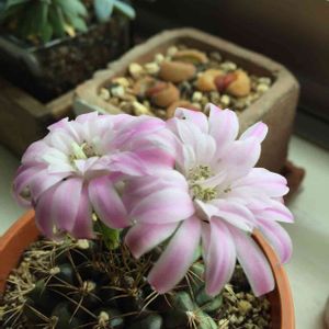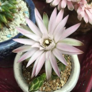 サボテン ギムノカリキウム 麗蛇丸 2回目の開花 こちらは交配っぽいけど綺麗です。😊
