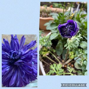 アネモネ💜 パンジーとの寄せ植えの時一輪 咲いていたのを私がポキッと😨 すごくショックだったけど 根元をよく見たら蕾が…😆 その蕾がやっと咲いてくれました💜 すごく嬉しかった〜💕🎶👍