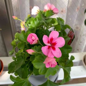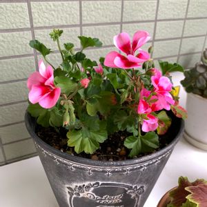 #ピンクのゼラニュームきれいに咲いてくれます、うれしいです。 買った時には見切り品で600円だった、形が整えてなくて、一回思い切り切り戻しましたが、いままさに復活した瞬間です。