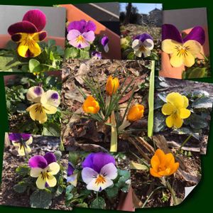 今日は快晴です😁☀️🎶 今朝のビオラ達💓💓💓 種からの子達も次々と咲き続けています☺️ かわゆ〜い❣️❣️❣️ クロッカスも本日開花しました🙌 蕾から庭を一回りしてる間に右下、開花しました😌