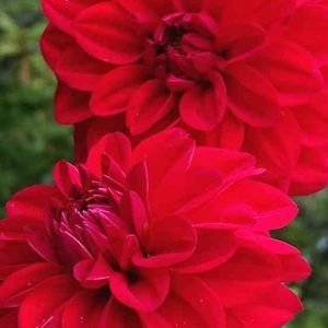 小雨の中、寄り添って咲くダリア😌 真っ赤な花びらの中で一枚だけ白い花びらがオシャレに見えました😆✨