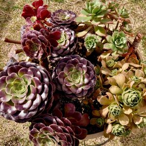 こんばんは(≧ω≦)🌱🌱 アエオニウムさん3種類を ひとつの鉢にまとめました カシミアバイオレットが 根詰まり?起こし葉がチリチリに 😭⁉️ 助かりそうな茎をチョンパしてブスリ 植え直し🌱🌱🌱 あと、葉の色が可愛くならない💦 夕映えと ベタベタカリカリの ナゾのレモネードも 一緒にして場所を減らしてみました ちゃんと根付いて またステキな姿を拝ませておくれ 🙏🙏🙏🌱🌱🌱 (´-ω-`)多肉ちゃん頼み🌱✨