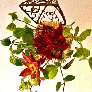 こんばんは(o^^o) 紅葉🍁祭りさん✨ 火祭りより濃い色の臙脂色です この時期寒いですが😵 色がステキなのがいいですね👍✨ 真っ赤なお花のようなので 100均の小物と家にある葉っぱと 合わせてみました🌱 こんな感じで多肉さんと 寒さを凌ぎつつ春を待ってまーす *\(^o^)/* 皆さま本日も暖かくして お過ごし下さい(o^^o)