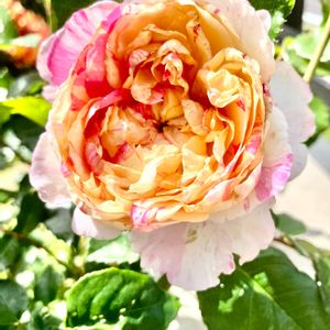 エドゥアール・マネ ✻。゚‧* 高い所でふっくら二輪咲いてます😊 2018年に篠宮バラ園 からお持ち帰りしました。近くのひばりが丘で小学校の同窓会があって、立ち寄りました☺️