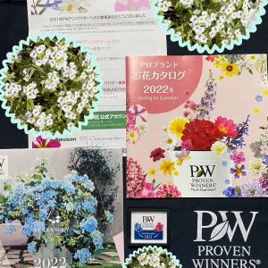こんにちは😊 今日は冷えこみますね ブルブル🥶😰😱 そういう日の中アッタカイ送り物が 届いたのです💝🧧 PROVEN WINNERS(pw)様 ハクサン様から 来年のカレンダー 2023花苗カタログ pwガーデングローブ 懸念バッチ 届きました🥰 有り難うございました🙇♀️ カタログを覗いて見ると 新商品が盛り沢山🤓😊🥰 中でもラグランジア シャンデリーニ ラグランジアの第3弾 花色がライムグリーンから次第に白い色に変化する様です。素敵ですね😊 ロベリアも新発売するそうです。 pwさんのロベリア楽しみですね🥰 新商品今から待ち遠しいです😊
