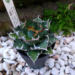 置き場所問題に晒される我が家のアガベチタノタのみなさん。ベランダの中でも特に日照時間の長い場所に置いて、真夏の猛暑でも遮光などは一切せず、ある意味で過保護に育ててきました。 とりあえず 今年の成長状況を備忘録的にアップします。 ✂︎ ------------------------------ 1.狼人 お迎えから約1年。まだ子株と呼べる大きさから中株程度まで大きくなりました。水と肥料はかなり多めに与えて、フォルムよりも成長重視で育ててきました。 葉の幅は気持ち広がったけど、鋸歯はまだまだ狼人らしいとは言えない感じ。 ✂︎ ------------------------------ 2.シーザー 狼人と同じ環境、同じ水やりと肥料のペースでしたが、この子は倍ぐらいの大きさに成長しました。 フォルムも悪くなく鋸歯もいい感じ。 シーザーって育てやすいかもです。 ✂︎ ------------------------------ 3.SAD この子も狼人、シーザーと同じ育て方でしたが、ちょっとだけ大きくなったかな…ぐらいな感じ。SADらしいトップスパインもちらほら見え出しましたが、まだ子株に毛が生えたかな…ぐらい。 去年、発根管理からスタートした株なので、来年以降の本格化に期待です。 ✂︎ ------------------------------ 4.白鯨 みんな大好き白鯨w この子は水やりと肥料は控えめでしたが、しっかりといい感じで育ってくれました。 とにかく徒長させないように…しか考えていませんw コンパクトにギュッと詰まった感じで育って欲しいです。