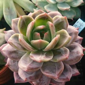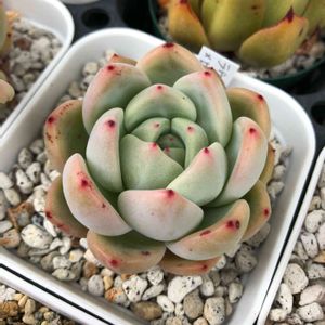 【 ラウリンゼ×ロメオ 】 真ん中ほんのりピンクになった。 梅雨はまだなのに、毎日 曇りor雨。 今日は降らないだろうと思っていたのに 🐶散歩に行こうとしたら降ってるし。 なんかヤバそうな多肉さんがちらほら。 土が乾かないよ🙄