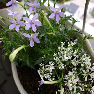 ハロウィン🎃仕様の寄せ植えのユーフォルビアが繁って来ました。植えた時は控えめだったのに今では名前の通り❄❄❄雪の様になってます🤭 ストック🤍💗も次々と延びて開花中!