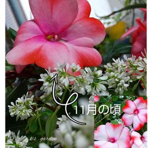 本日3連投デス(*u_u*)ペコリン♡ 左上の🍁モミジは色付いて来たというのに. . . スーパーベルさん達💗🤍💜❤️ 夏のお花がまだまだ元気です(๑˃͈꒵˂͈๑) っていうかぁ〜 春っぽいわぁ〜😅(笑)💦 手前にも、挿し芽で増やした🌱 スーパーベルさん達💗🤍💜❤️と、ユーフォルビアダイヤモンドスノー❄️ 🌟私の推しのPW🌟 勿論No.1は、スーパーベルさん💗🤍💜❤️ とにかく可愛い💕 植え付けてから半年経つのにまだまだ元気❣️ 寄せ植え🔰初心者の私でもお世話出来ました😍