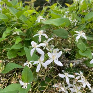 お隣の垣根に咲いていた花。 アメリカ🇺🇸テキサス州 @メリー さんに教えていただきました。センニンソウ。