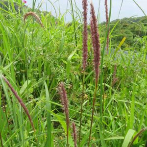 太東海浜植物群落で見た景色です🌿🌿🌿 「今日のお花」 チガヤ 単子葉植物イネ科チガヤ属 花期は初夏(5 - 6月)で、葉が伸びないうちに葉の間から花茎を伸ばして、赤褐色の花穂を出す。 穂は細長い円柱形で、葉よりも花穂は高く伸び上がり、花茎の上部に葉は少なく、ほぼまっすぐに立つ。 小穂は基部に白い毛がある。 花は小さく、銀白色の絹糸のような長毛に包まれて花穂に群がり咲かせ、褐色の雄しべがよく目立つ。 果期の熟した穂は、綿のようにほぐれて、種子(果実)はこの綿毛に風を受けて遠くまで飛ばされる。 最後のpicは、地元のチガヤ🌿 この写真を撮った翌日、綺麗に刈り取られていました😱😅💦💦✂️