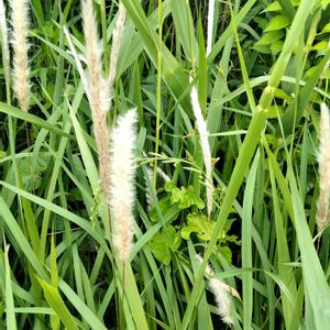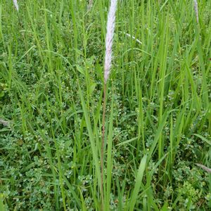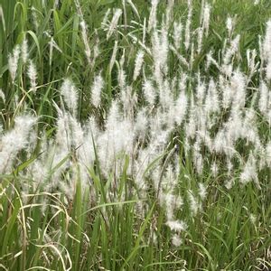 チガヤ(茅萱・千茅) イネ科 チガヤ属 5~6月 30~80cm 在来種(or帰化種) 多年草 雄性先熟 葉に先だって稈(イネ科の茎のこと)を伸ばし、長さ10~20cmの長い尾状の花穂をつける(穂状の円錐花序) 花穂は2個の小花(第1、第2小花)からなる小穂が多数集まったものであるが、第1小花は退化しており1小花にみえる 雄しべ2個 柱頭2岐 花被片は退化している 花穂の先端部から下部に向かって順に葯が裂開し、その後柱頭が出てくる 小穂の基部に絹毛が密につく ※ チガヤには稈の節に毛があるフシゲチガヤと無毛のケナシチガヤの2型があるそうです 単にチガヤというときはフシゲチガヤを指すようですが、現在は広義に扱うらしい 花期は ケナシチガヤ∶4~5月 フシゲチガヤ∶5~6月 とケナシチガヤが一ヶ月ほど早いみたい