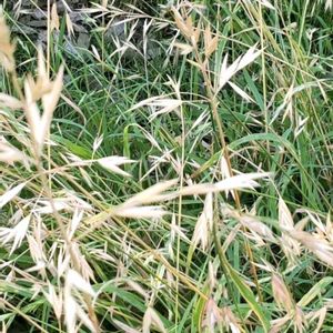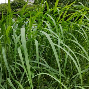 地味~な花 3 道路に沿った植え込みの中で、群れて生えていて風になびくチガヤ。 白い穂がになっても素敵ですが、これはその前、雄しべを出しているチガヤです。