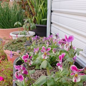 先日 叔母が送ってくれた苗 9つ入ってました 1つだけ単独で植えました 日陰過ぎる日陰でいじけてた黒竜をそえて… ~ビオラ~
