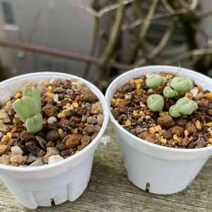 多肉さん達と一緒に温室で冬を超えたアラビスさん❤️ ガッツリ根が張っていたので植え替えました🎶 ここからピンクになってくれるかな〜╰(*´︶`*)╯♡