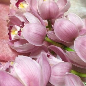 ステキなお花をいただきました💜 なんとかランでしょうね😊 丸くて可愛らしい。 上品な色。 綺麗でうっとり🥰 あ シンビジウムでしたね。
