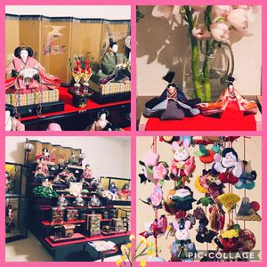 我が家のお雛様🎎 京雛の為、お内裏様とお雛様の並びが違います。 頂いた吊るし雛やミニ雛人形と一緒に😌