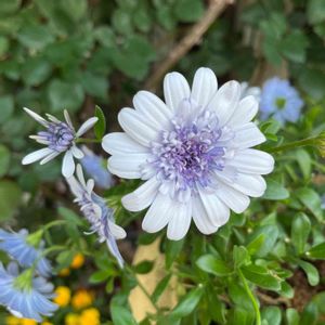 『桔梗』 八重の桔梗 一輪だけひっそり… 白一色かと思いきや、紫少し… 美人さんです✨
