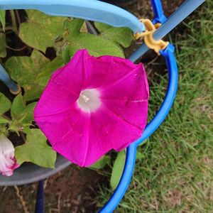 おはようございます🎵 今日はまた違う色の朝顔が咲きました🌼🌿 とってもキレイ✨ そして、とっても大きい😲☝️