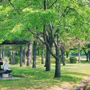 公園で。 緑の下のベンチに座っていた老夫婦がなんかステキにみえました。