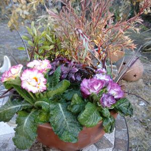 こんにちは☀️ 今日は、寒い朝で霜が降りてました(。-_-。) 庭仕事していても指先が痛いです🥲 今日の予報最高気温か7度…( ˊᵕˋ ;)💦 年内で1番寒い日になりそうです💦 今日の投稿picは、一昨日お連れしたプリムラ ‘’クラシカルドレス‘’です。 園芸店で見つけて、このくすんだ渋めな赤紫色に一目惚れしました(∩´∀`∩)💕(実際の色より明るく写ってます😅) ポンポンラパンとどっちがいいか悩んだんですが、こちらの色合いには勝てず、クラシカルドレスをお連れしました( ˊᵕˋ*) 調べてもあまり検索に引っかからないので、珍しいプリムラなのかな? まだまだたくさんの蕾があって楽しみです(*´˘`*)♥
