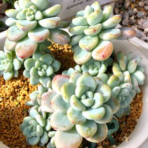 ロッティ丼♡ ロッティ丼に憧れて一年〜 ようやく丼になってきました🤗💕 まだまだ不揃いですが💦 お迎えした時はお肉園の1鉢だけ。 1鉢400円でちび苗3株入ってました♪ 1年でここまで増えてくれました☺️ 秋冬には可愛くなってくれるといいなぁ😍
