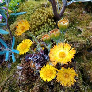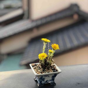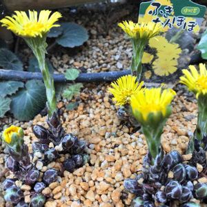 『フキタンポポ』 初めて見て即買いして昨日、広島からの長旅にも負けずに元気な姿で届きました☺️ 早速、鉢植えと苔玉仕立てで植え付けました。 タンポポに似てる花❗️面白い株姿❗️ 全体に不思議な感じで可愛い😍💕 癒されます💕 鉢で眺めて花後は、庭植えにして増やします。