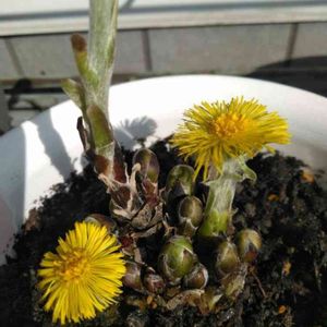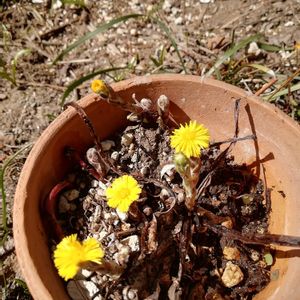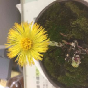 福寿草に似てるけどフキタンポポ。 絵付き豆鉢に一目惚れで年末にお迎えした子です。 素朴でいいわぁ~☺️♥️