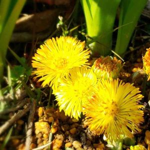 黄色からオレンジの色合いが綺麗✨🧡 毛深い太い茎もチャーミング💕 🌱🌼✨🌼✨🌼🌱🌼🌱🌼🌱 フキタンポポ Tussilago farfara L. フキ科 フキタンポポ属 中国〜ヨーロッパ原産 花後に出る葉が蕗に似る事からこの名前 🇫🇷Tsssilage または Pas-d’âne(ロバの足)茎が似てる?🐴