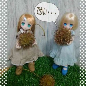台風一過、公園に緑のトゲトゲの実がたくさん落ちてました。 調べてみた所、これはモミジバフウ(紅葉葉楓)、あの茶色くて穴だらけの若いものだとか。 ドールに持たせるとドリアンみたい!(笑)