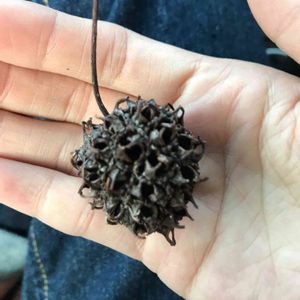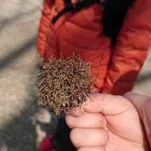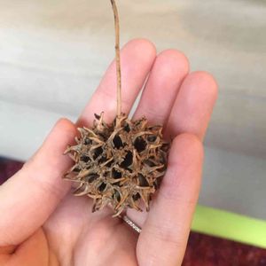 子供が拾った木の実。 モミジバフウの実でしょうか…スギの実と教えてしまい反省。