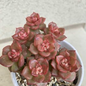 暖かいのは今日までかな? 今日もいいお天気です☀ 100均のヤマトヒメさん💖 中心部分がグリーンですが爪の先が赤くて可愛いです❣️ 2枚目pic 先月お迎えしたデカ桃ちゃん🩷 少し桃太郎らしくなってきたかな?🤗 3枚目pic ガーン🫨やっちまった😱 葉焼け?してます😭😭😭 気をつけて置いていたのに西日が当たってたみたい🥲 ごめんよ〰️桃ちゃん🙏