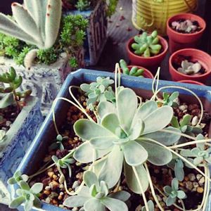 ほったらかしにしてた訳ではないですが、蒸れが怖くて水あげず様子見していた多肉ちゃん達 ハオルチアは日光不足で伸びてますね…窓に向かって伸びていたのでちょっとだけ方向転換。 月兎耳は虫に齧られ根っこチョンぱの茎刺しだったけれど、無事に芽がでてきて安心。土に埋まってない茎からも根っこ出てるから水不足ですね… 昨日はカラカラ土組に水やりしたけど、大丈夫かなぁ…風くるようになったのが嬉しいけども。ビビリかなぁ…