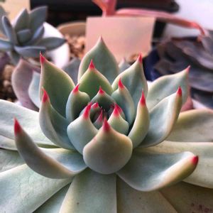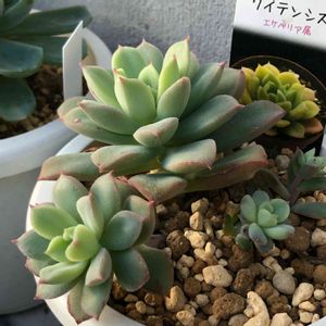 ポケットマルシェの購入品その3 エケベリアたち なぜ一度にご紹介かというと 嬉しくてお一人様で紹介して 遺影のなった悲しい過去があるから😢 ムチムチさんや赤くなってる子 爪が色付いてたり 可愛いわぁ💕!
