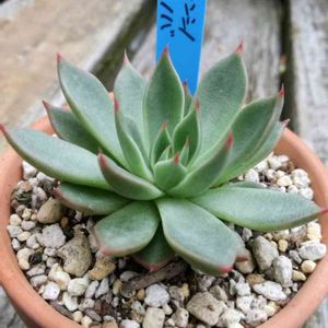 サン美人 エケベリア属 大和高原さんからの お持ち帰り苗 ニバリスやバイオリーナに 似た雰囲気のサン美人 ウチでは ニバリスは全体的に青味がかっていて そのニバリスに葉の縁をうっすらピンクにしたのがバイオリーナ バイオリーナを全体的にピンクにしたのが サン美人って感じです (同じ多肉やったりして笑) お花比べで白黒ハッキリさせたい‼️