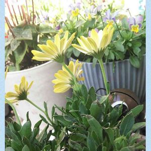 10月に植えてからずーっと咲き続けている白いロベリア そして、春から咲き続けるロータスブラックムーニーなんだかもうすごくないですか??? ホワイト×裏がイエローのオステオスペルマムと夏越しのスカビオサ(松虫草)も葉が出てきてるけど、ロベリアとロータスに埋もれてちっとも見えません。オステオスペルマムは黄色くひとつ咲いてるのわかるかな〜。